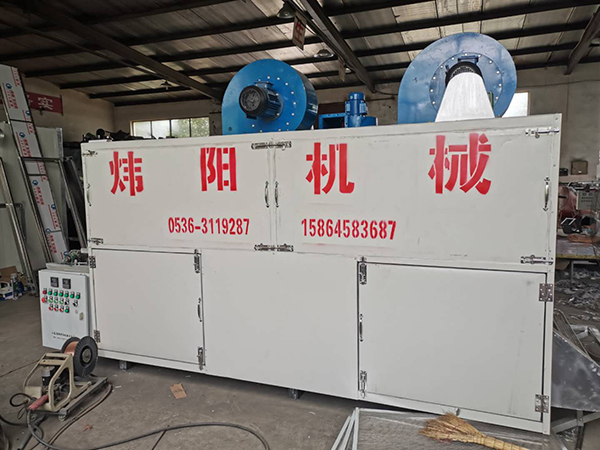The feeding machine is equipped with a homogenizer, which controls the thickness of the material layer and eliminates the need for manual laying, reducing labor and ensuring drying quality.