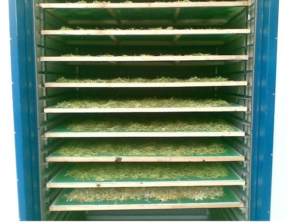金銀花烘幹箱的特點:該產品實現自動控製,性能穩定,有電(diàn)加熱和煤加熱兩種。再采用我們的工(gōng)藝烘幹後的產品花形飽滿,顏色鮮亮,市場價位高,是廣大(dà)中型用戶的理想選擇。