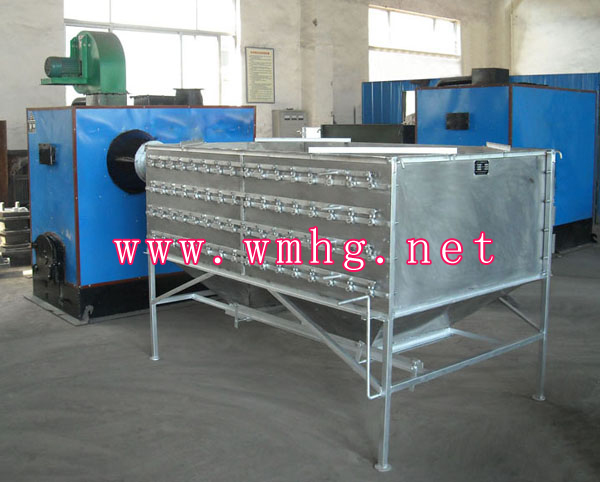 設備組成:熱風爐(配帶強力風機)、風管、多層翻轉式烘幹機、溫(wēn)控箱。