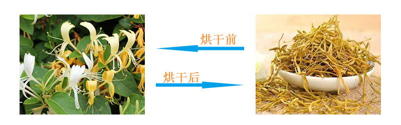 隨著金銀花烘(hōng)幹機的運轉,箱體的金銀花在(zài)網帶上不斷向前移動。箱體內采用多(duō)層網帶式結構,金銀花在傳動裝置的帶(dài)動下向前移動並逐層掉落,翻轉;層與(yǔ)層之間設有導料裝置,防止物料隔層掉落,由於物料在箱體內由多次地掉落、翻轉過程,使受熱麵發生(shēng)改變,物(wù)料均勻受熱,避免了幹燥不均勻現(xiàn)象的發生。