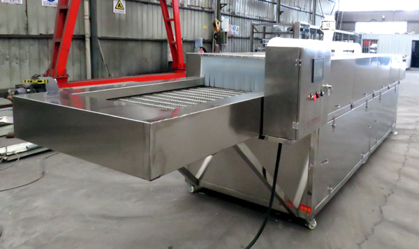 烘箱采用多層結構,幹燥麵積大,能(néng)實現大批量連續生產。燃燒室和進入烘箱的熱風是完全隔離的兩個部分,燃燒所形成的物質全部排出室外,不對箱體內物品汙染,達出口衛(wèi)生標準。